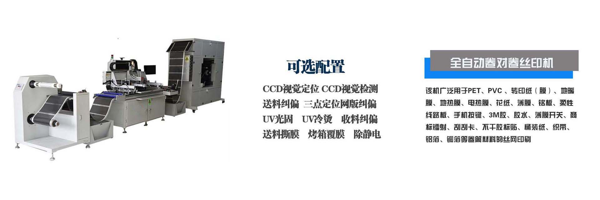 我司主要生產(chǎn)全自動(dòng)絲印機(jī),全自動(dòng)卷對卷絲印機(jī),全自動(dòng)薄膜開關(guān)絲印機(jī),全自動(dòng)熱轉(zhuǎn)印膜絲印機(jī),全自動(dòng)無紡布絲印機(jī),全自動(dòng)電熱膜絲印機(jī),全自動(dòng)電路板絲印機(jī),卷料商標(biāo)標(biāo)簽絲印機(jī),電熱膜凹印機(jī),涂布機(jī),全自動(dòng)切片機(jī).imd設(shè)備,imd熱壓成型機(jī),數(shù)控3D沖切機(jī),鋰電池卷繞機(jī),電熱膜覆合機(jī),覆膜機(jī),倒卷機(jī),簡易分條機(jī),打孔機(jī)等設(shè)備